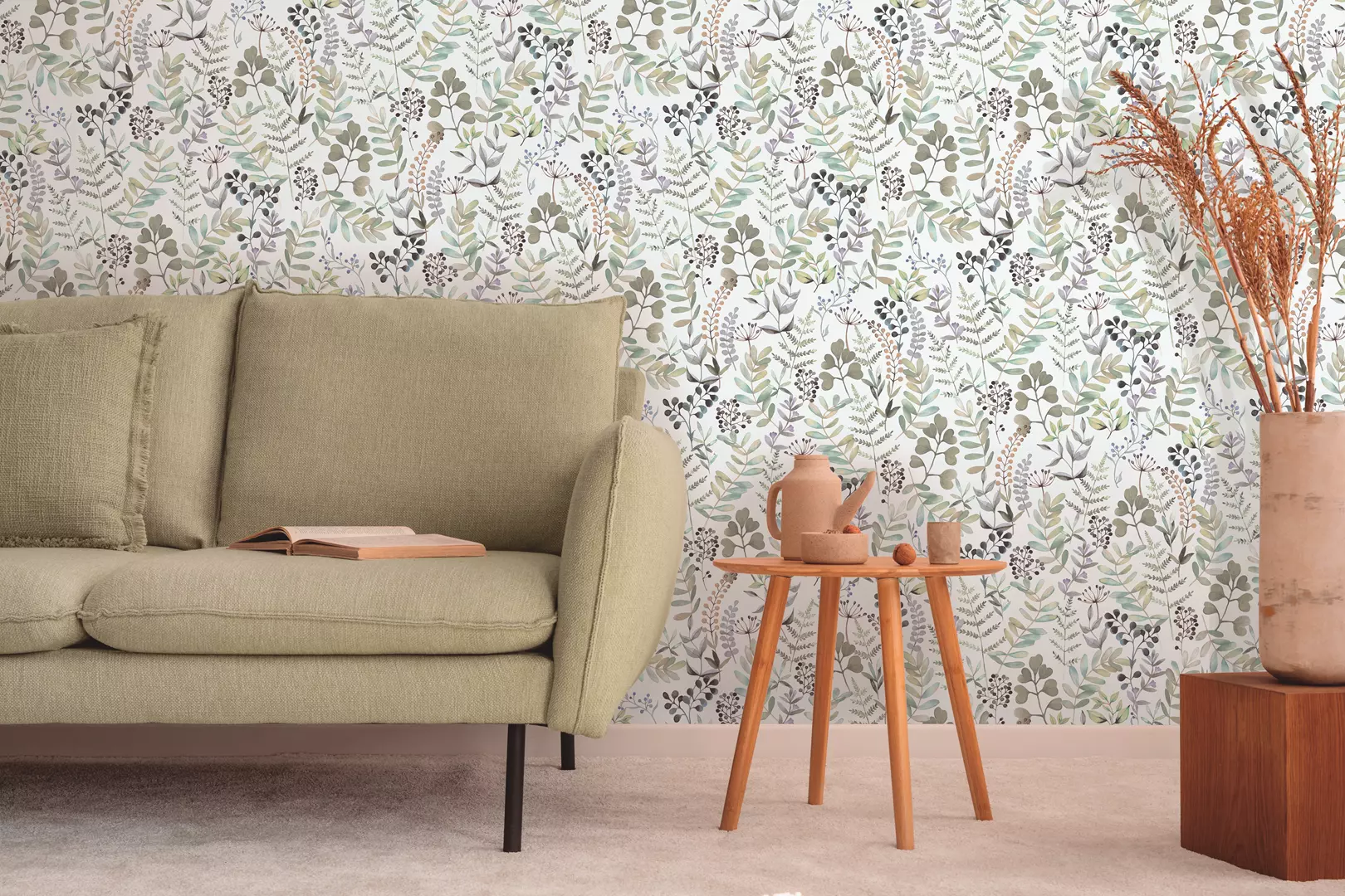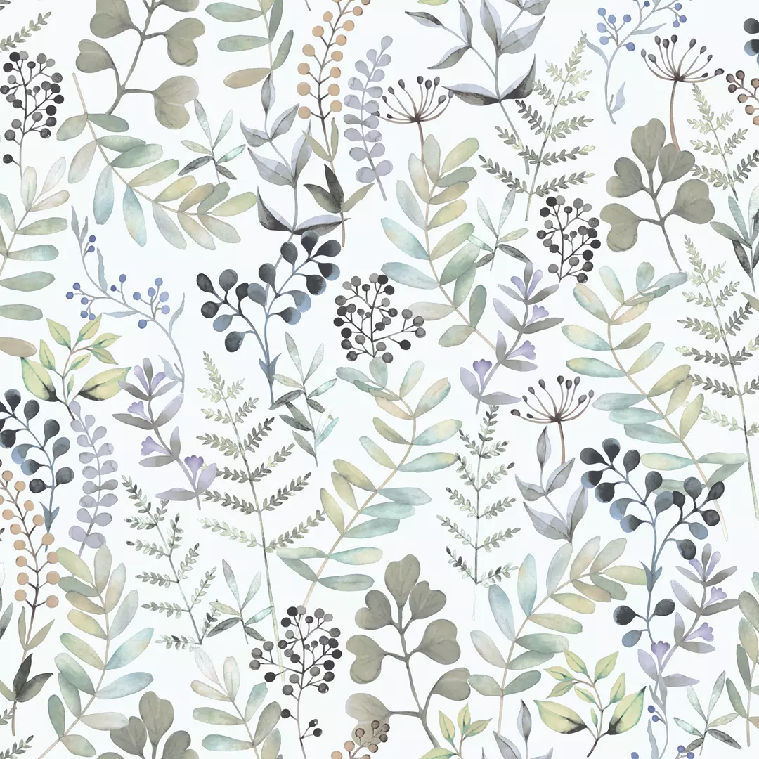 Papel de Parede Branco Folhagens