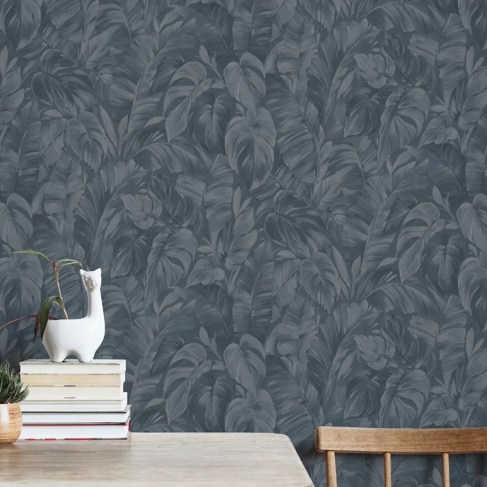 Papel de Parede Folhagem Azul