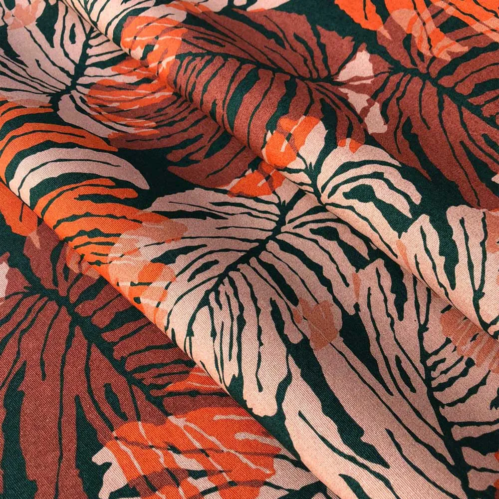 | CORES | Nude, laranja e verde escuro. |